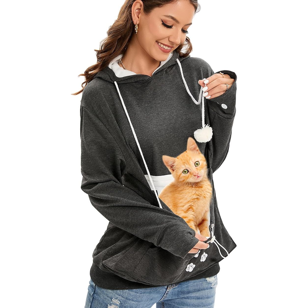 BOMBAXCEIBA Fleece pet Cat Small Day Pouch Hoodie Carrier Holder Carrying Sweatshirt Kangaroo Pocket