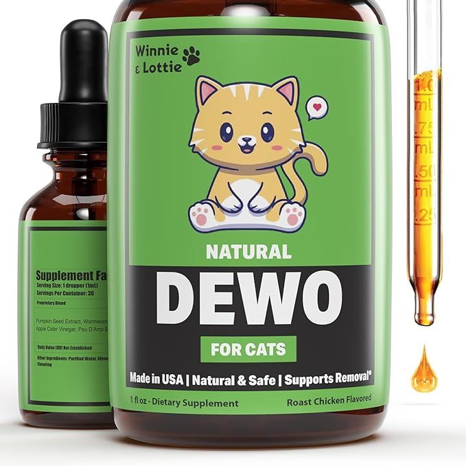 Natural Tapeworm Treatment for Cats - Natural Treatment for Whipworm, Roundworm, Hookworm, Tapeworm & More - Cat Supplements & Vitamins - Cat Vitamins - Cat Supplements - 1 fl oz - Chicken Flavor
