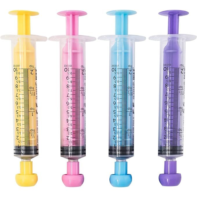 The 4Pcs Animal Syringe Feeder is a set of four chromatic plastic syringes designed for feeding puppies, cats, rabbits, and other baby animals. Each syringe has a capacity of 10ml, making it ideal for administering liquid medications, milk replacers, or other nutrition to young animals.