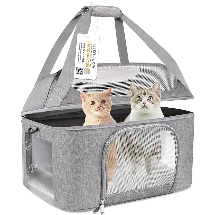 Bejibear Large Cat Carrier for 2 Cats, Oeko-TEX Certified Soft Side Pet Carrier for Cat, Small Dog, Collapsible Travel Small Dog Carrier, TSA Airline Approved Cat Carrier for Kitten Cats 20 lbs-Gray