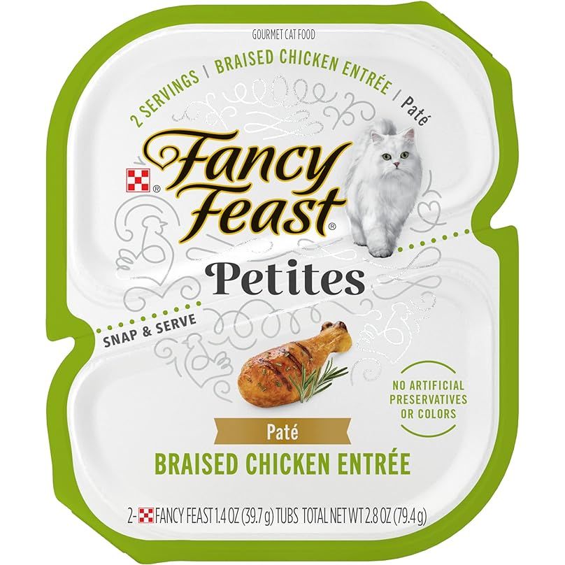 Purina Fancy Feast Petites Gourmet Wet Cat Food Pate, Petites Braised Chicken Entree - (Pack of 12) 2.8 oz. Tubs