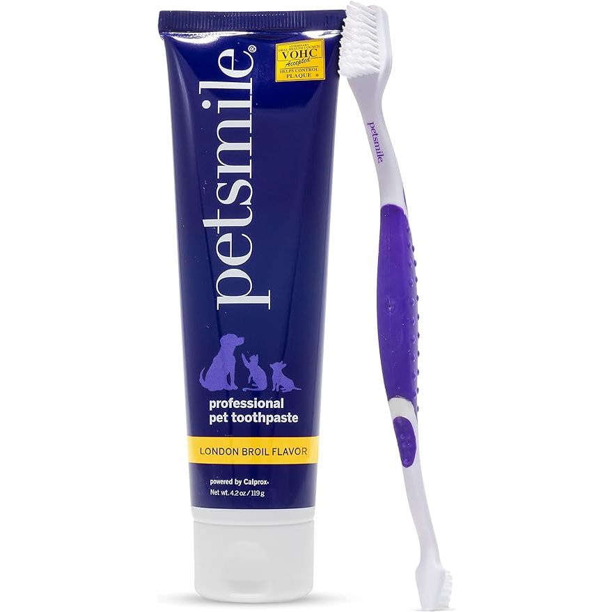 Petsmile Professional Pet Tooth Brushing Kit - Cat & Dog Toothbrush & Toothpaste - Control Plaque, Tartar & Bad Breath - VOHC Accepted Toothpaste - Teeth Cleaning Supplies (London Broil, 4.2 Oz)