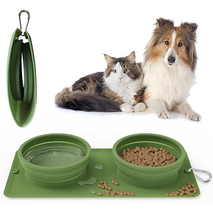 Whether you are camping, traveling, or just out for a walk, the Collapsible Portable 2-in-1 Dog Bowl is a practical and convenient solution for keeping your pet fed and hydrated. The vibrant green color adds a pop of color to your pet's gear, while the functional design ensures that your pet stays happy and healthy while on the go. Description by ChatGPT.
