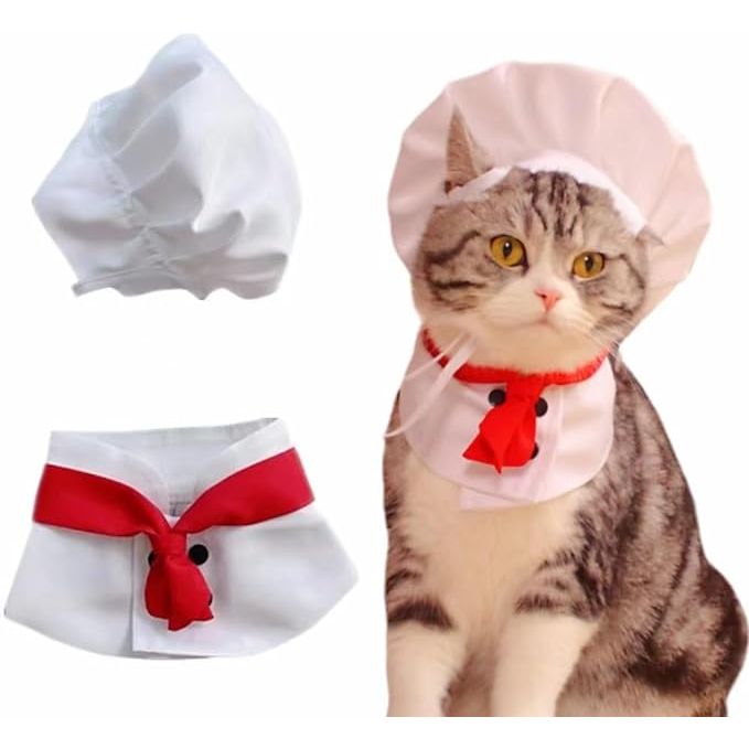 Pet Chef Hat Costume Set Pet Cooking Chef Cap Chef Dog Bandana Halloween Pet Costume Chef Hat for Cat