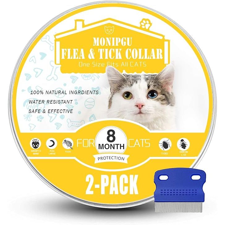 In addition to flea and tick prevention, these collars are also waterproof, so your cat can still enjoy outdoor activities without compromising their protection. The pack also includes a comb to help you easily remove any pests that may already be on your cat's fur. With these collars, you can ensure that your cat stays healthy and happy without the worry of pesky parasites. Description by ChatGPT.