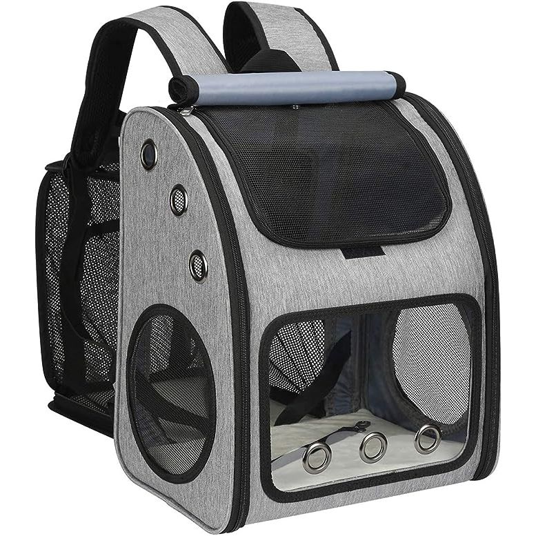 Introducing our rear expandable pet backpack, designed for your furry friend's comfort and safety while on the go. The expandable feature allows the space inside the backpack to double, providing increased air circulation and freedom of movement for your pet. With 1 large transparent acrylic window, 3 breathable mesh windows, and 9 venting holes, your pet will enjoy excellent ventilation and visibility during travel.