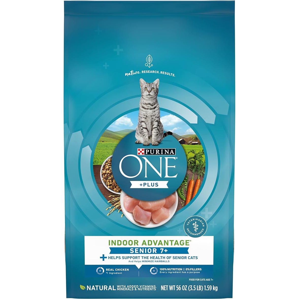 Purina ONE High Protein, Natural Senior Dry Cat Food, Indoor Advantage Senior+ - 3.5 lb. Bag