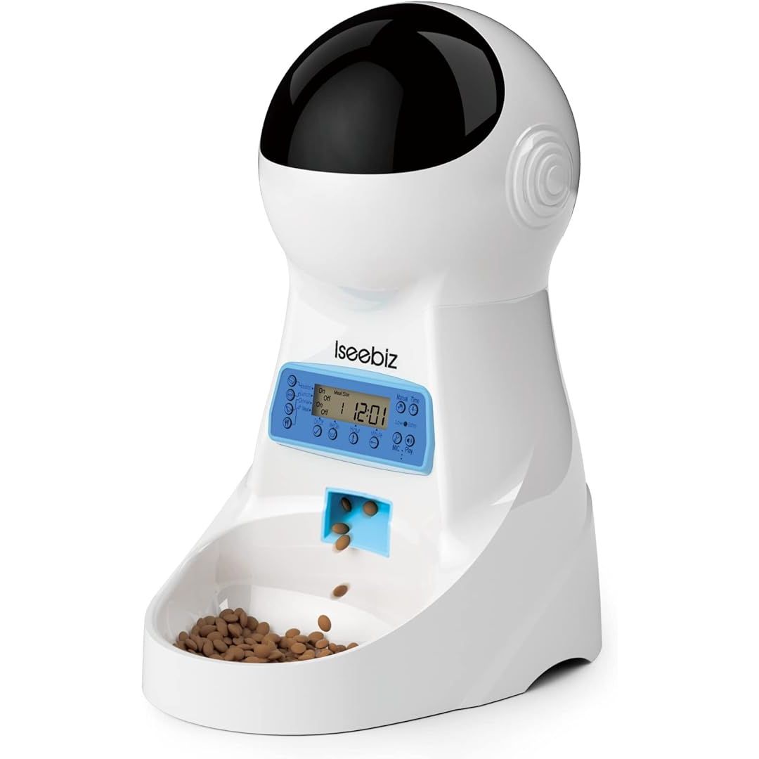 Overall, the Iseebiz Automatic Cat Feeder offers convenience, reliability, and customization for pet owners looking to establish a consistent feeding schedule for their beloved furry friends. Its anti-clog design, portion control options, dual power supply, and voice recording feature make it a great choice for busy pet owners who want to ensure their pets are well-fed even when they are not at home. Description by ChatGPT.