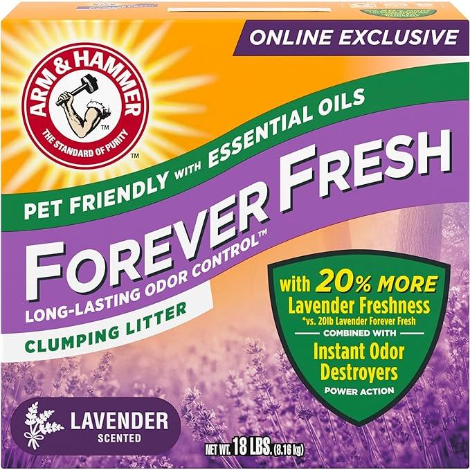Arm & Hammer Forever Fresh Clumping Cat Litter Lavender, MultiCat 18lb with 20% More Lavender Freshness, Pet Friendly with Essential Oils