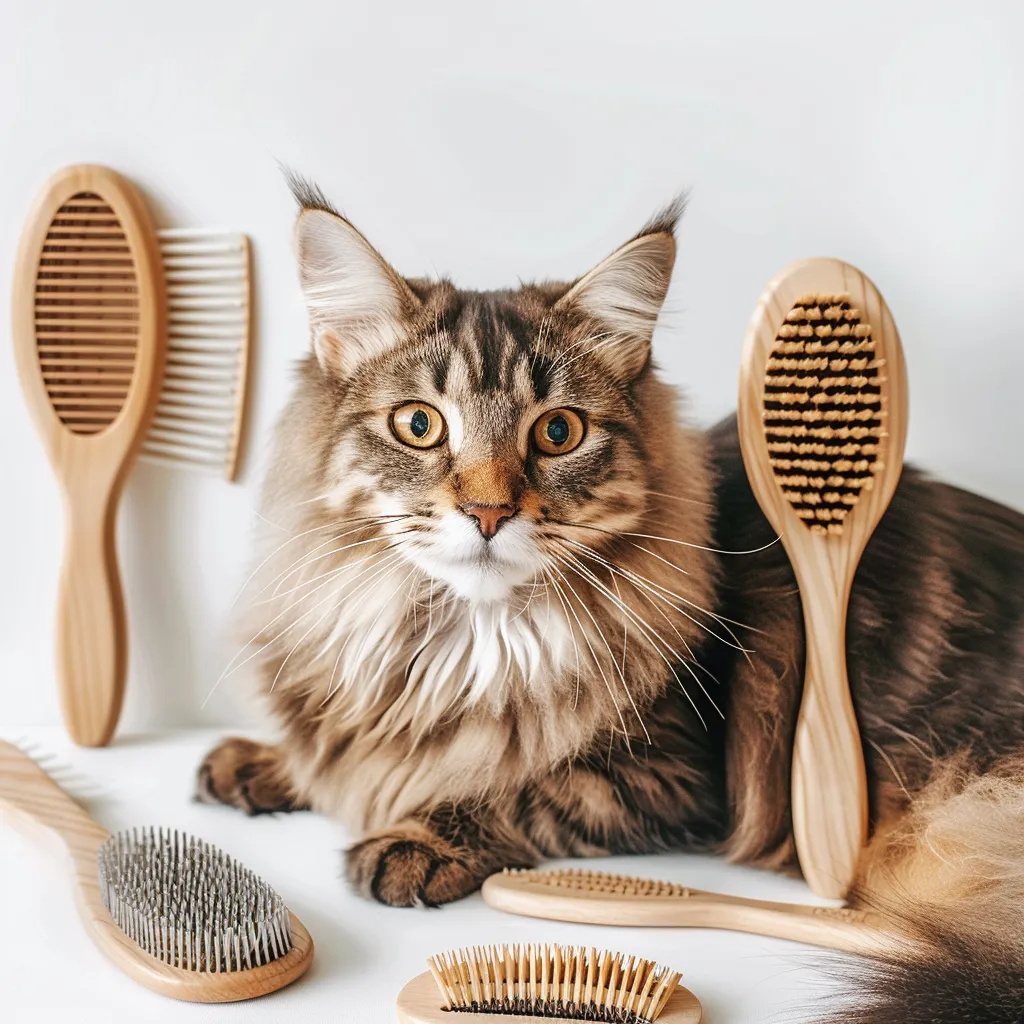 Cat Brushes for Indoor Cats, Metal Dog Combs for Grooming, Cat Brush Kit with Release Button for Kitten(4 P...