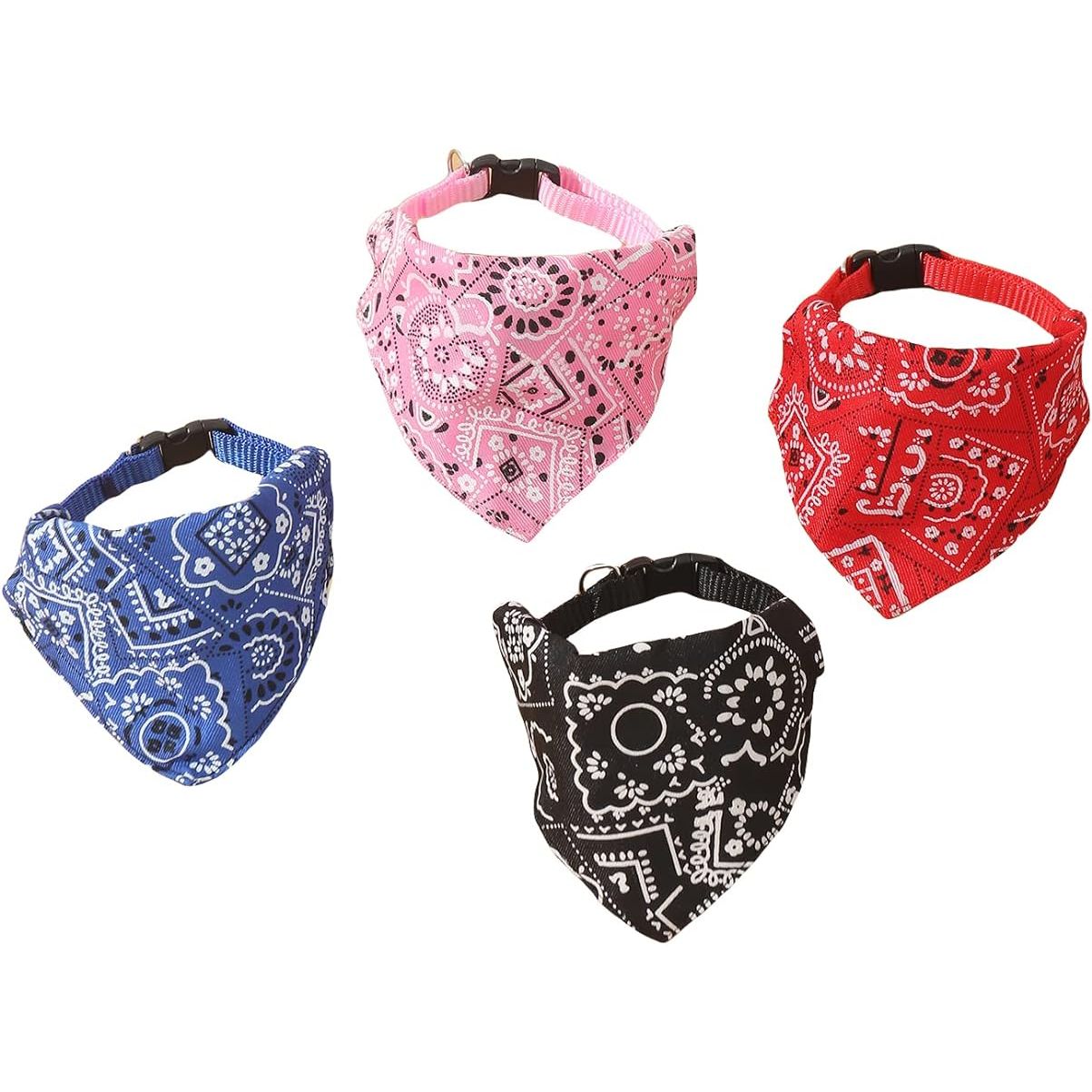 The QWINEE 4pcs Dog Bandana Collar Scarf is a set of four adjustable bandanas designed for small dogs, puppies, cats, and kittens. The bandanas come in various colors and patterns, allowing you to change up your pet's look easily.
