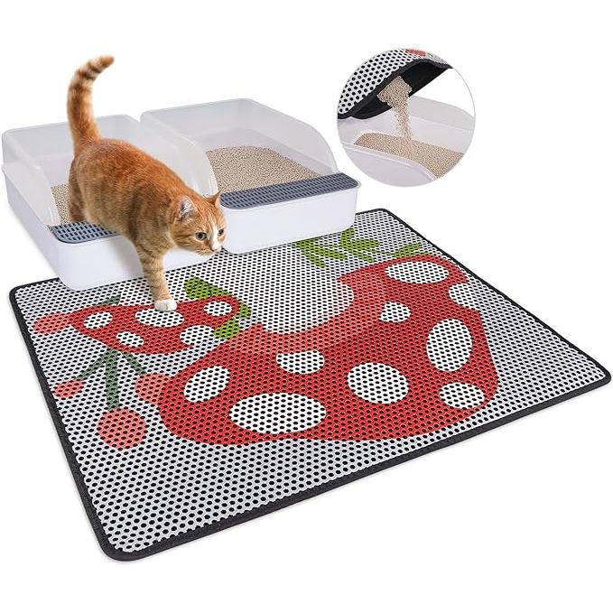 The Bienbee Cat Litter Mat is a double cat litter mat designed to trap litter and keep floors clean. With a large size of 30" x 24", this mat is perfect for cat owners looking to reduce tracking and mess around their litter box. The mat features a unique mushroom design that effectively traps litter and prevents it from being scattered all over the floor.