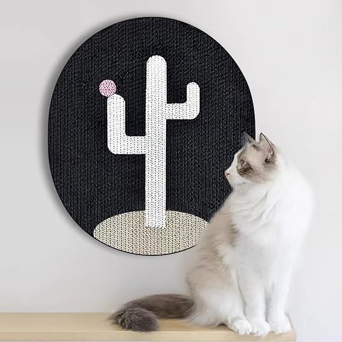 This cat scratcher can be easily mounted on a wall, saving space in your home and providing a vertical scratching option for your cat. The textured surface helps to satisfy your cat's natural scratching instincts and prevent furniture damage. The included wall sticker adds a fun and playful element to the cat scratcher, making it both practical and aesthetically pleasing.