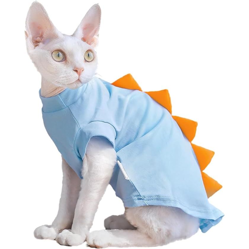 Bonaweite Sphynx Cat Clothes, Dinosaur Design Cat Shirts for Cats Only, Hairless Cat Sweater, Breathable Cat Daily Wear Clothes for Devon Rex Cats Summer, Kitten Costume T-Shirts with Sleeves for Cats