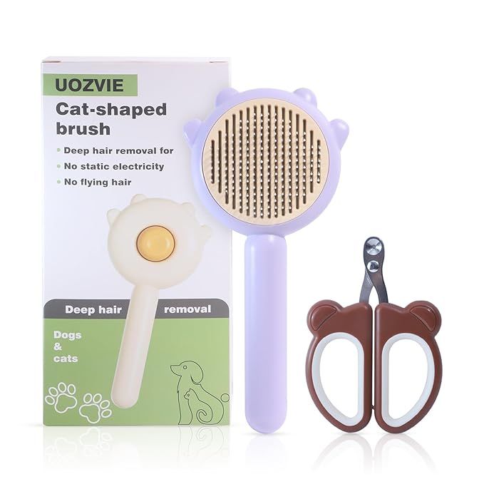 cat brush with release button - cat brush for indoor cat hair removal cat hair brush for long or short hair cats Cat nail clipper with round cutting holes(PURPLE)