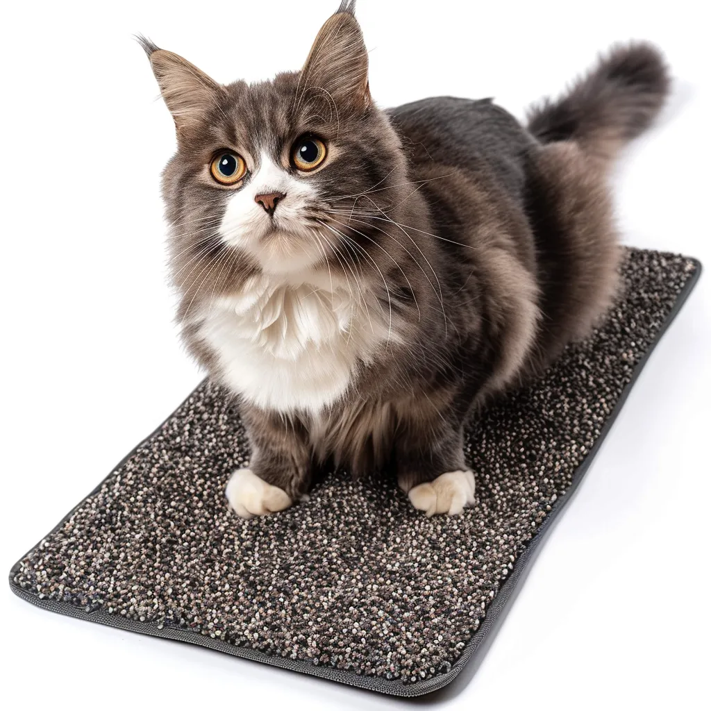 Quality Gray Cat Litter Trap Mat, Non-Slip Backing, Dirt Catcher, Soft on Paws, Easy to Clean