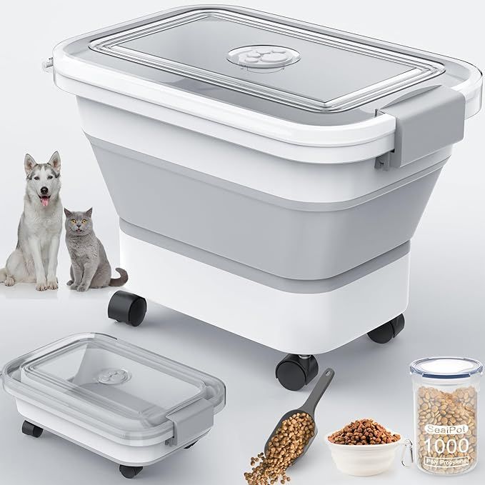 DDMOMMY 20-23 Lbs Dog Food Storage Container, Collapsible Dog Food Container with Transparent Airtight Lid,Pet Food Scoop and Dog Bowl,Multifunctional Food Storage Container for Pet Food,Rice,Flour
