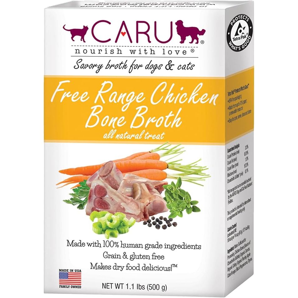 Caru Free Range Chicken Bone Broth For Dogs And Cats, Moistens Dry Food Or Pour Over Freeze Dried Raw Food, Grain And Gluten Free, Non-Gmo Ingredients (1.1 Lbs)